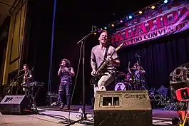![]() Wild Fire during a live performance in October 2017. left to right: Tyler Voss, Zack Sawyer, Taylor Roberts and Cameron Alidor. | |