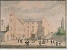 No. 60 is the former Wildersgade Barracks. The main building was built by Jørgen Henrich Rawert and Andreas Hallander in 1802.[1] The long, one-storey building to the left is the barracks' former stables. The yellow building on the other side of the street is the rear side of the Irgens House complex which served as artillery barracks from 1789. Many other houses in the street are also listed. They consist mostly of townhouses and former warehouses. The large building at No. 70, on the corner of Cjristianshavn Canal and Wilder's Canal, is Princess Marie's Home for Old Seamen and Their Widows and also houses the Seamen's Association of 1856. The oldest part of the building is from 1874 while an extension dates from 1921.