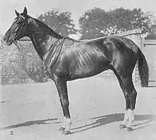 Wildfowler (1895 – 1917) was an Irish-bred, British-trained Thoroughbred racehorse and sire. He showed very good form as a two-year-old in 1897 when he won three of his five races and finished third in the Middle Park Plate. In the following year he ran fourth in the 2000 Guineas and was fancied for the Epsom Derby before being scratched from the race. He returned in September to win the St Leger, upsetting the Derby winner Jeddah but did not race again. He stood as a breeding stallion in Ireland and France but was not a great success although he did sire a top-class performer in Llangibby and an influential broodmare in Silver Fowl.