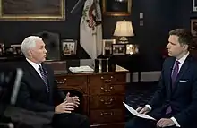 ![]() Frost (right) interviewing Vice President Mike Pence in February 2020 | |