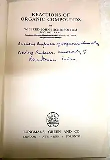 Wilfred John Hickinbottom FRIC (18961979) was an English chemist.[1] He was educated at King Edward's School, Birmingham and went on to study chemistry at the University of Birmingham, graduating with first class honours in 1921. He then went on to complete a PhD under Professor G. T. Morgan.[2]