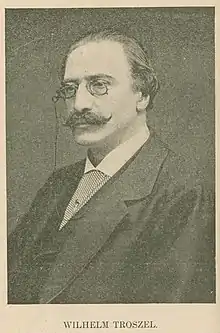 Wilhelm Troszel (26 August 1823 - 2 March 1887) was a Polish composer and operatic bass. Born in Warsaw, he was the son of composer and piano maker Wilhelm Troschel.[1] Toszel studied vocal techniques with August Freyer.[2] He made his stage debut at the Grand Theatre, Warsaw on 17 April 1843. At that theatre he notably created the role of Zbigniew in the world premiere of Stanisław Moniuszko's The Haunted Manor at the Grand Theatre, Warsaw in 1865.[3]