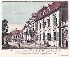 Front of the Ordenspalais; the left annex of the Palais Schulenburg (old Imperial Chancellory) in the background; engraving by Johann Georg Rosenberg, around 1785