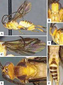 - 1 2 Rousse; Gupta (2013). "Microgastrinae (Hymenoptera: Braconidae) of Reunion Island: a catalogue of the local species, including 18 new taxa and a key to species". Zootaxa. 3616 (6): 501–547. doi:10.11646/zootaxa.3616.6.1. PMID 24758826.