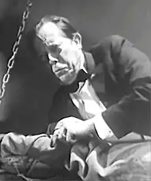Stanton made his debut in a feature film with a small role in Raoul Walsh's 1928 silent film Sadie Thompson, starring Gloria Swanson, Lionel Barrymore, and Walsh.[2] Notable films in which he appeared include: the 1933 version of Alice in Wonderland, and its cast included Cary Grant, W.C. Fields, Gary Cooper and Edward Everett Horton;[3] the classic Mutiny on the Bounty (1935), starring Charles Laughton and Clark Gable;[4] the 1936 film adaptation of James Fenimore Cooper's novel Last of the Mohicans;[5] The Prince and the Pauper (1937), starring Errol Flynn;[6] Howard Hawks' 1941 Sergeant York, with Gary Cooper;[7] and The Ghost and Mrs. Muir (1947), directed by Joseph L. Mankiewicz.[8] His final screen appearance was as a cab driver in the romantic comedy Adam's Rib.[9] Stanton nade his last performance on an episode of television's Schlitz Playhouse in 1954.