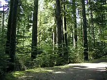 The forest's dominant tree species is the Douglas-fir, the state tree of Oregon. Douglas-fir is a valuable timber species in the United States. The forest contains some stands of old-growth forest, some of which are over 300 feet (91 m) tall, among the tallest trees in the world, with tree diameters ranging from 3 to 8 feet (0.91 to 2.44 m).[8] A 1993 Forest Service study estimated that the extent of old growth in the forest was 594,800 acres (240,700 ha).[9]