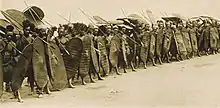 The leading column under Gustin and Semio lost contact with the rear column on 300 men under Van Kerckhoven, Milz, Montangie and Van de Vliet. Gustin and Semio often had to fight, and found the local people had destroyed all food supplies.[2] Supplies and porterage presented problems to Van Kerckhoven's main column. It was divided, leaving 200 of the less able-bodied men at the foot of the rapids, while the others went ahead in search of the Gustin-Semio advance guard.[7] Some of the baggage had to be returned to Mbittima, and the column had to force its way through.[2] On 11 July Van Kerckhoven and Milz left by land along the south bank of the Nzoro through difficult country, with the soldiers carrying their loads for lack of porters. They reached Tagomolanghi on 25 July 1892.[7]