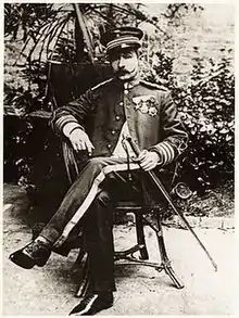A governor general of the Congo described Van Kerckhoven as "a hurricane which passed through the countryside leaving nothing but devastation behind it."[11] In 1887 Van Kerckhoven told a fellow passenger on a steamboat, Roger Casement, that he paid his African soldiers a small fee for every rebel head they brought him after a battle, "to stimulate their prowess in the face of the enemy." Casement later became known for exposing the brutal regime in the Congo Free State. He was a close friend of Joseph Conrad, and his account may have influenced Conrad's depiction of Kurtz in his Heart of Darkness.[12] The Uele-Nile expedition confiscated ivory worth hundreds of thousands of francs, for which it became notorious, and killed about 1,800 men. The subsequent "Arab Wars" that lasted until 1894 were in part due to its actions. However, the historian Albert Chapaux considered that Van Kerckhoven was among the leading figure in the development of the Congo Free State.[13]