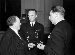 The most controversial aspect of Mengelberg's biography centers on his actions and behaviour during the years of the Nazi occupation of the Netherlands between 1940 and 1945. His biographer Frits Zwart writes (for Radio Nederland) of an "interview Mengelberg had given with the Völkische Beobachter, the German Nazi newspaper...the gist of it was that, on hearing of the Dutch surrender to the German invaders on May 10, 1940, he had brought a toast with a glass of champagne [and] had also spoken about the close bond existing between the Netherlands and Germany." Zwart also notes that Mengelberg conducted in Germany and in German-occupied countries throughout the war, and was photographed in the company of Nazis such as Arthur Seyss-Inquart.[8]
