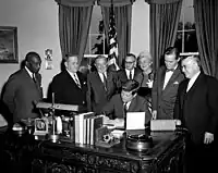 - ↑ "H.R. 7152. CIVIL RIGHTS ACT OF 1964. ADOPTION OF A RESOLUTION (H. RES. 789) PROVIDING FOR HOUSE APPROVAL OF THE BILL AS AMENDED BY THE SENATE.", govtrack.us, retrieved August 6, 2022