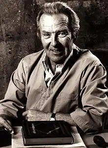 The Cuneo Press was a major publishing company in Chicago specializing in the printing of various magazines. In addition, John F. Cuneo's love for books led him to create a small fine bookbinding department that was used to help promote the printing department operation. At the time that Cuneo met William Anthony in England, the master binder in charge of the fine bookbinding department, George A. Baer was seriously ill with hepatitis, and it was not clear if, or when Baer would return to work. Cuneo was so impressed with Anthony's leather bindings, that he offered him the job in Cuneo Press's fine binding department.[2] Anthony, attracted by this “head of department” position, accepted the job and moved with his wife, Bernadette and their three children to Chicago. However, by the time the Anthony's arrived in Chicago, George Baer had recovered and resumed his duties as “head of the department”, and William Anthony was given the position of “head of the Art Department” which permitted him to work occasionally on binding books until George Baer's retirement in 1970.[2] By 1973 it became clear that the Cuneo Press could no longer support the luxury of its fine binding department so Anthony began his transition to private practice, first via a partnership with an established Chicago bookbinder, Elisabeth Kner, followed in 1980 by his own company, Anthony and Associates. During this time, William Anthony was busy promoting the art and craft of bookbinding in the Chicago area and became a founding member of the Chicago Hand Bookbinders which remained a vital force until 2009, well past Anthony's time. In 1984, William Anthony was appointed University Conservator at the University of Iowa library, a position he held until his death in 1989. During his five years at Iowa he was active in establishing the conservation department as well as setting up a world class bookbinding studio. Among the many students who studied with Anthony are: William Minter, Mary Lynn Ritzenthaler, Pamela Spitzmueller, David Brock, Mark Esser, Lawrence Yerkes.[3] One of his last apprentices, Annie Tremmel Wilcox wrote a book about her experience under Anthony's tutelage.[4]