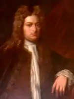 William Dummer was born in Boston, the capital of the Province of Massachusetts Bay, to Jeremiah Dummer, the first American born silversmith, and Anna (Atwater) Dummer.[1] His grandfather was Richard Dummer, an early Massachusetts settler and one of the colony's wealthiest men, and he was also related to the magistrate Samuel Sewall.[2][3] Dummer was the oldest of nine children, only four of whom survived to adulthood. He was baptized at Boston's Old South Church on September 29, 1677 (O.S.) [= October 10, 1677 (N.S.)].[4][5]