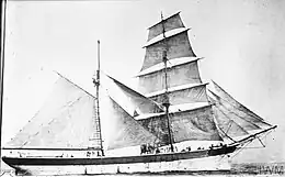 Sanders' conduct on Helgoland resulted in a promotion to lieutenant, and he was also recommended for command of his own ship.[21] In early 1917, he was appointed captain of HMS Prize,[Note 1] a three-masted topsail schooner that was sailing under the German flag when it was the first enemy ship to be seized by the British after the outbreak of the First World War. Originally sold by the Admiralty to a shipping company, it was later offered to the Royal Navy for use as a decoy vessel and converted to a Q-ship in early 1917.[24] This involved the addition of diesel engines, radio equipment and armament, including two 12-pounder guns; one was inside a collapsible deckhouse while the other was on a platform that was raised from the hold. A pair of Lewis guns and a Maxim machine gun were also fitted.[25]
