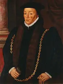Sir William Garrard (1518–1571), also Garrett, Gerrarde, etc., was a Tudor magnate of London, a merchant citizen in the Worshipful Company of Haberdashers, who became alderman, Sheriff (1552–1553) and Lord Mayor of London (1555–1556) and was returned as an MP for the City of London.[1] He was a senior founding officer of the Company of Merchant Adventurers to New Lands (The Muscovy Company) in 1554/55, having been involved in its enterprises since the beginnings in King Edward VI's time, and for the last decade of his life was one of its permanent governors. He worked hard and invested largely to expand English overseas trade not only to Russia and the Levant but also to the Barbary Coast and to West Africa and Guinea.[2]