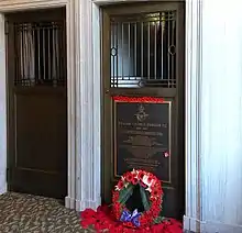 His funeral, the largest national state event in Toronto's history, was attended by an honour guard of 2,000 soldiers. The cortège stretched for more than a mile and a half, and it included the Chief of the General Staff and his senior officers, the Lieutenant Governor of Ontario, the Mayor of Toronto, three federal government cabinet ministers, and six other Victoria Cross recipients. An honour guard was also provided by the United States Army. Some 50,000 spectators lined the streets of Toronto en route to Mount Pleasant Cemetery, where Barker was entombed in his wife's family crypt at the Mausoleum.[26]