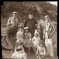 He purchased a cottage in Runswick Bay, in 1890, and spent most summers there painting. He took his students from Leeds School of Art (one of whom was Hilda Annetta Walker)[3] to the area for sketching expeditions and was very supportive of the younger artists. William had four daughters and a son. One of his daughters, Dorothea, was an artist herself[4] and, at seventeen, had her first painting accepted by the Royal Academy. William Gilbert Foster was living in Halton, Leeds, in the United Kingdom Census 1901 (although he's filled in the census just as Gilbert Foster). His wife was there as a widow in 1911.[5]