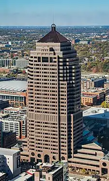 The William Green Building is a 530-foot (160 m), 33-floor skyscraper[2] in Columbus, Ohio, United States. It was constructed from 1987 to 1990, and was topped out on June 8, 1988. It is the third-tallest building in Columbus, the tallest constructed in 1990s and the eighth-tallest building in Ohio.[2] The low-rise wing that extends to North High Street is constructed on the former site of the Chittenden Hotel.