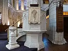Pulpit, St Matthew's in the City | St. Matthew's in the City, Auckland | 1925 | Architectural stone carving.Oamaru stone. |