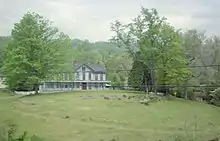 In 1889, while he was president of the Gauley Mountain Coal Company, Page had a palatial white Victorian mansion built by company carpenters on a knoll in the middle of town. Architect William Minter designed the house in a Gothic style. It has 15 regular rooms, plus a butler's pantry and a dressing room. There are 11 fireplaces with hand-carved wooden mantels; most are in different styles. Even the doors have ornately decorated hinges.[2] The exterior features 52 8-foot-tall windows. The mansion, now known as the Page-Vawter House, became a symbol of wealth and power. It remains a community landmark over 100 years later.[3]