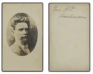 Hardeman fled to Mexico at the end of the war but soon returned to become a planter in Texas.[1][2] In 1874 he began to serve as sergeant-at-arms of the Texas House of Representatives and then as inspector of railroads.[2][3][6] In the later years of his life, Hardeman was superintendent of public buildings and grounds at Austin, Texas.[2][3] This job included supervision of the Texas Confederate Soldiers' Home.[2][3]