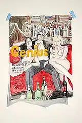 The name of the drawing was taken from a post on James Wagner's blog.[7] The work features caricatures of individuals involved in the controversial New Museum exhibition, including Jeff Koons as Howdy Doody, which Edward Winkleman remarked is ironic considering how much Powhida's work owes to Koons.[8] New Museum trustee at the center of the controversy, Dakis Joannou, bought a print of Powhida’s drawing from his New York dealer for $1,500.[9]
