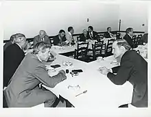 In February 1978, after President Carter nominated G. William Miller for Chair of the Federal Reserve, Proxmire was noted to be a reliable source of contention but predicted from the start of his confirmation process that Miller would meet little opposition.[49] At the end of the month, eleven members of the Senate Banking Committee pressed for a confirmation of Miller as Federal Reserve Chair, a motion that Proxmire rejected while he was scheduling the vote for another day, and he admitted that the nomination would be easily confirmed by the panel and the full chamber.[50] On March 2, Proxmire cast the sole dissenting vote against the Miller nomination and called him unqualified for the office since he was without experience in economic or monetary affairs. Proxmire acknowledged Miller's business success and was joined by ranking Republican, Edward W. Brooke, in indicating that the Carter administration had influenced members of the panel to hasten the confirmation process.[51]