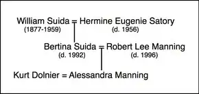 His daughter, Bertina, studied art history at New York University's Institute of Fine Arts, where she met and married fellow art history student Robert Lee Manning. The elder Suida gave his son-in-law a position as curator for the Kress collection. Bertina was a curator at the Chrysler Collection. Through their own purchases, William and his daughter and son-in-law amassed a private collection of hundreds of European paintings and works on paper.