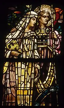 Inspired by European work and the Pre-Raphaelites, Willet rebelled against the American School of stained glass – a movement established by Louis Comfort Tiffany and John La Farge identified by its use of opalescent glass.[3] Willet believed that opalescent glass ignored the principles of architecture and did not fulfill the purpose of a window. Instead, he was enamored with the medieval technique of transparent antique glass, lecturing and writing constantly on the subject.[4] As a member of what Charles J. Connick termed the "Early School" of stained glass artists, Willet, and fellow craftsmen Otto Heinigke and Harry E. Goodhue, are credited with renewing America's interest in traditional medieval materials, techniques, and aesthetic.[5]
