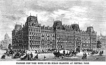 - Augusta Ann Yale, who married to Hiram Cranston, proprietor of the New York Hotel, one of the largest in Manhattan.[24][25][26] The hotel was at 721 Broadway, between Washington Square Park and Waverly Place. Cranston also cofounded the Manhattan Club with Attorney General John Van Buren, son of U.S. President Martin Van Buren, and a few others.[27] His friends at the club included Commodore Vanderbilt, his son-in-law Congressman Horace F. Clark, and Congressman Richard Schell, of the family of Winston Churchill.[27]