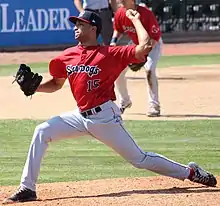 In 2015 Jerez joined the Low A Greenville Drive, where he went 3–1 with a 2.06 ERA and three saves, striking out 43 in 39⅓ innings of work. He then gained a promotion to High A Salem Red Sox and was more dominant, posting a 1–0 record with a 0.73 ERA and 12 strikeouts in 12 innings.[10] The Portland Sea Dogs would be the fifth stop in just a year and a half for Jerez, as he collected scoreless outings in 13 of 22 appearances since his Double-A debut on June 24, 2015.[11] Overall, he went 5–3 with a 2.54 ERA and four saves in a career-high 41 games during the three stints.[10]