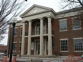 The courthouse was built in 1858 and is the third one to serve the county. It is Greek Revival in style and 65 by 90 feet (20 m × 27 m) in plan. Its portico has four Doric columns which were cast at a nearby foundry.[2]