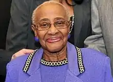 In the 1950s she worked with Martin Luther King and other Chicago ministers and activists as a field organizer for the Southern Christian Leadership Conference.[16] In the 1960s she helped organize the Chicago chapter of Operation Breadbasket with Rev. Jesse Jackson.[17] She opposed U.S. involvement in the Vietnam War and led a delegation to North Vietnam in 1968.[6][18] She joined the National Urban League in 1943 and the National Council of Negro Women in 1945.[19][20] She was the godmother of President Barack Obama.[5] In 1973 she protested social services cuts by the Nixon administration.[13]