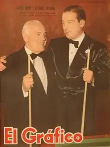 Willie Hoppe on the cover of the magazine El Gráfico in 1949, with Ezequiel Navarra, an Argentine player who had just defeated him.