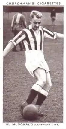 William McDonald (9 July 1905 – 1979)[2] was a Scottish footballer who played as an inside forward. Born in Coatbridge, Lanarkshire, he played for Law Scotia, Dundee United, Broxburn United, Albion Rovers, Armadale, Airdrieonians, Manchester United, Tranmere Rovers, Coventry City and Plymouth Argyle.[2][3]