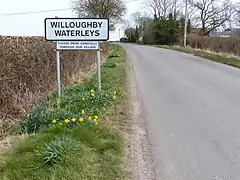 ![]() Welcome place name sign for Willoughby Waterleys | |