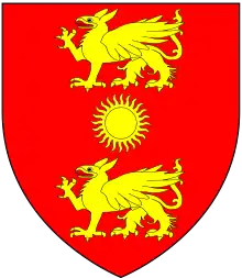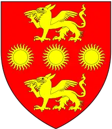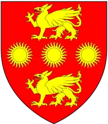 Arms of Wills baronets "of Blagdon" (1923): Gules, a sun in splendour between two griffins passant or[3]