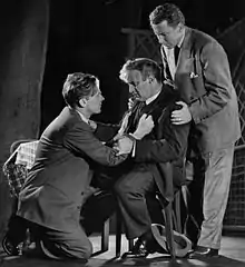 Willy has always made the point to his sons that being popular and having contacts is the key to success.[12] His older, less successful son, Biff, causes "old hopes and boiling resentments" to return by visiting home after losing yet another job.[17] Biff and Willy love each other, but do not get along; Biff resents Willy for insisting he pursue a life he doesn't want, while Willy thinks Biff has failed on purpose to spite him.[7] Their relationship is the emotional lynchpin of the production.[10] Biff attempts to help his father see what has become of him.[12] In the end, Biff decides that he must force his father to see the truth rather than his fanciful images, for his own good, regardless of its toll on his father.[3] This is the emotional climax of the show as he bares his soul, saying, "Pop, I'm nothing! I'm nothing, Pop! Can't you understand that? There's no spite in it any more. I'm just what I am, that's all."[10] At Willy's funeral, Biff states that "He had the wrong dreams...He never knew who he was."[12]