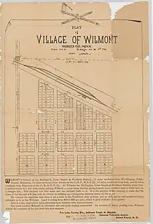 Willmont Township (note the double-L) was established in 1878. There was a general disagreement over the township name, one faction wishing to call it Willumet, and the other favoring Lamont. On November 22, 1878, a compromise was reached, and the township was formally named Willmont.