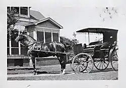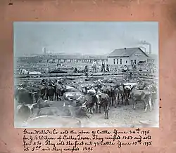 J.B. Wilson (1847–1920) and his younger brother Frederick P. Wilson (1863–1923) emigrated to the US from Canada, and established themselves as successful cattlemen and entrepreneurs of the 19th century.[7][8] In 1894, Frederick married Henrietta M. Frichot (1864–1953). In 1898, Frederick acquired a parcel of land equivalent in size to a city block from the heirs of his wife's uncle, colonist Jacob Nussbaumer (1827–1881),[9] who was one of the original Dallas La Reunion settlers. Nussbaumer had acquired the land from Illinois native John Grigsby, who originally patented the land in 1838. A year after Frederick's acquisition, he built the Wilson family home on the parcel known as 2922 Swiss Avenue. He later decided to construct six additional homes as rentals, three of which still remain as part of the Wilson Block Historic District.