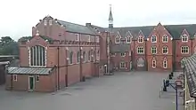 The college is notable for its school productions, at least one of which has been produced every year since 1972, usually in partnership with the Ursuline High School. To assist in these productions, a revolving stage was built in the auditorium of the new hall and the school has a well-attended stage crew. Simon Potter MBE started the collaboration with the Ursuline, and produced, directed, adapted or wrote 67 plays and musicals between 1972 and 2022.[2]