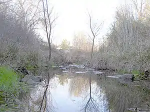 The watershed is about 25 square miles (65 km2), with a maximum elevation of about 800 feet (240 m) and a minimum elevation of about 50 feet (15 m). The creek is seasonal and is generally dry during the summer months. With increased urbanization in the Windsor area, some parts of the creek retain water in isolated pools through the summer, due to runoff from sprinklers and other urban sources.[3]