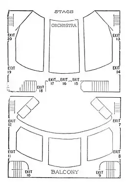 On August 23, 1955, a rooftop water tank feeding the fire sprinkler system fell through the reinforced concrete roof, and 10,000 gallons of water caused extensive damage to the interior. Dark since the end of Tea and Sympathy in June, the theatre was closed and the building was demolished later that year.[1][2][9]