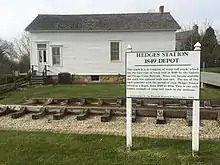 Hedges station is the oldest train depot in Illinois. It was built in 1849 on the west side of Church Street, where the police station is currently standing. In 1977, Winfield Township bought the station after all the owners had died. Their plan to demolish the building to construct a parking lot and more village offices was opposed by citizens who wanted the oldest building standing in Winfield to be turned into a historical site instead. After many arguments, the Township decided to move into another location. In 1981, Hedges station was moved to Winfield road, where it is currently located, and is now a museum.[20]