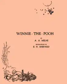 Before writing Winnie-the-Pooh, A. A. Milne was already a successful writer. He wrote for English humour magazine Punch, had published a mystery novel, The Red House Mystery (1922), and was a playwright.[2] Milne began writing poetry for children after being asked by fellow Punch contributor, Rose Fyleman.[3] Milne compiled his first verses for publishing, and though his publishers were initially hesitant to publish children's poetry, the poetry collection When We Were Very Young (1924) was a success.[2] The illustrations were done by artist and fellow Punch staff E. H. Shepard.[2]