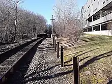 The station was located between the main Danbury Line and a shorter spur track that lead into the Winnipauk Woolen Mill complex roughly 1300 feet south of the Merritt Parkway overpass of the Danbury Branch.[3] Uncommon for smaller passenger stations of its time, The station had a large brick depot and had a high level side platform.[4] The large brick depot continued to stand until the Winnipauk Woolen Mill complex was demolished circa 1960.