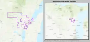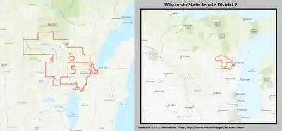 - ↑ "Wisconsin Legislative Districts - Senate District 2 Boundaries". Wisconsin Legislature. Retrieved February 8, 2021.
