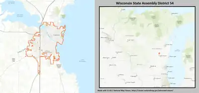 - ↑ "Wisconsin Legislative Districts - Assembly District 54 Boundaries". Wisconsin Legislature. Retrieved January 25, 2021.