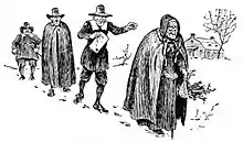 In the 1620s, some colonists began to accuse one another of practicing witchcraft. Though witchcraft cases in Virginia were less common and the sentences less severe than the more famous witch trials of Salem, documented evidence exists that about two dozen such trials took place in Virginia between 1626 and 1730. These ranged from civil defamation proceedings to criminal accusations.[10] Unlike the Salem witch trial courts, where the accused had to prove their innocence, in Virginia courts the accuser carried the burden of proof.[11] Further, Virginia courts generally ignored evidence said to have been obtained by supernatural means, whereas the New England courts were known to convict people based solely on it. Virginia courts required proof of guilt through searches for "witch's marks" or a ducking test.[11][12]