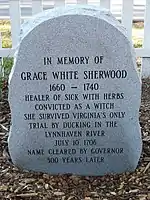 - 1 2 Witkowski, Monica C. "Grace Sherwood (ca. 1660–1740)". Encyclopedia Virginia. Retrieved 2022-10-23.