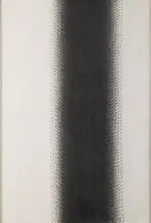 By 1958, Fangor had begun developing his distinct visual idiom that incorporated and combined large areas of blurred in a variety of quasi-geometrical, abstract forms, initially painted in black and white. It was the foundation of his subsequent artistic experiments, "where color, light, space, and a temporal perception remained fundamental aspects of pictorial expression."[15] These ideas were reflected in Fangor's first "painting environment," an exhibition space that incorporated paintings into the surrounding environment, titled Studium przestrzeni (Study of Space) (1958) designed together with Stanisław Zamecznik at Salon Nowej Kultury in Warsaw.[5]
